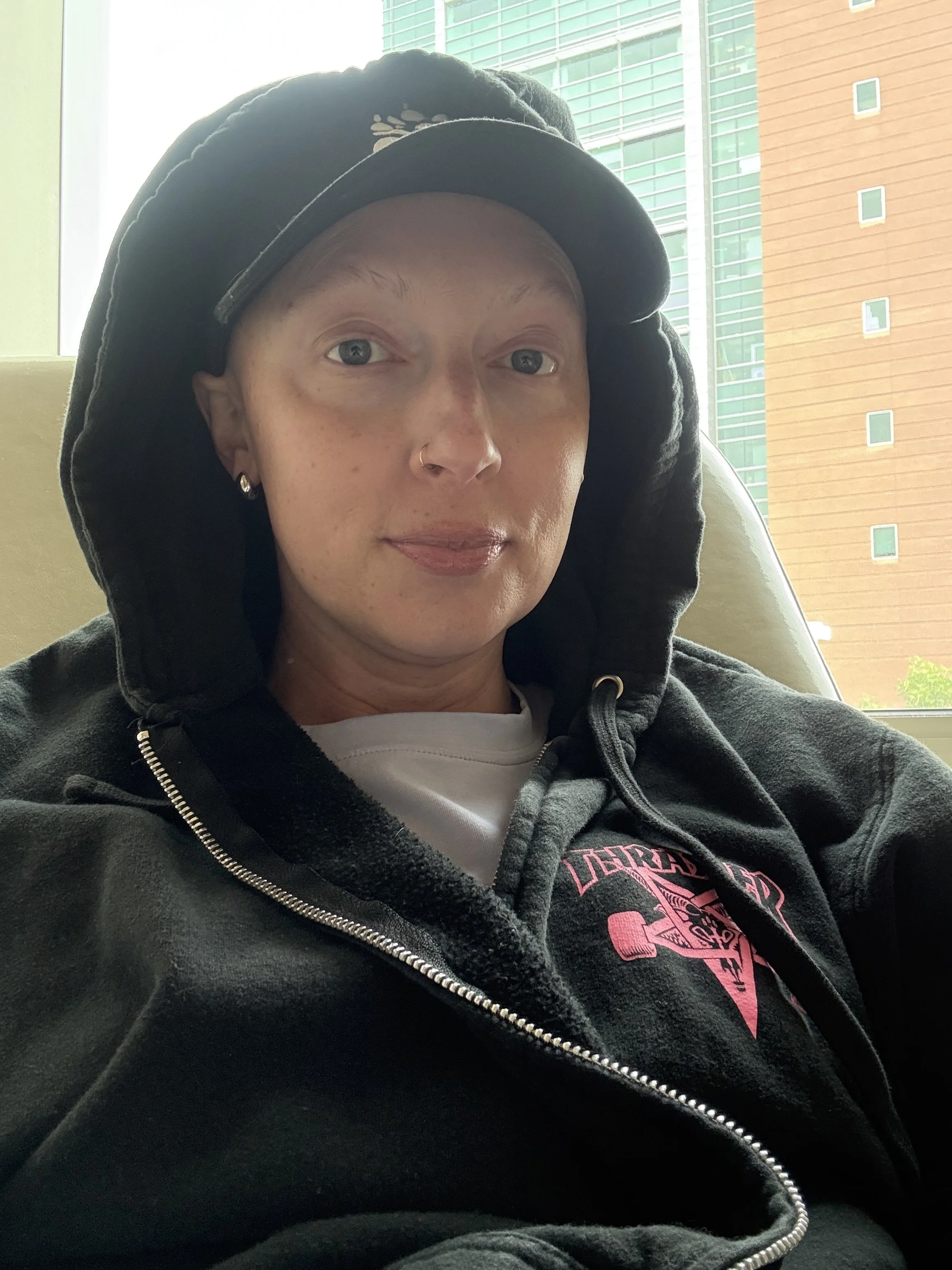 I also lost all my hair—eyebrows, eyelashes, nose hairs—everything. I felt like an avatar at the start of a video game, waiting for my features to be filled in. You don’t realize how functional these tiny hairs are until they’re gone. My eyelids would stick together when I blinked, and my nose became an unpredictable leaky faucet. Thankfully, I’m now starting to see regrowth!